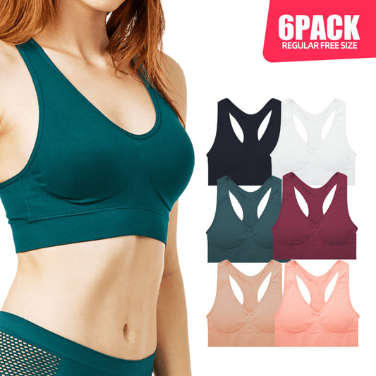 6 Pack Women's Seamless Wireless Racerback Sports Bra with Removable Pads