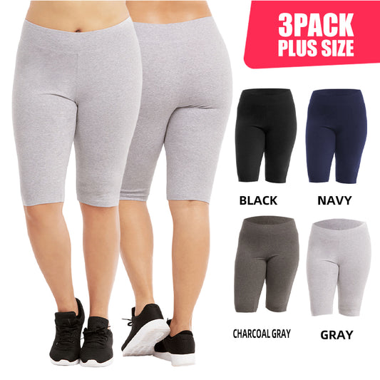 3 Pack Women's Curvy Plus Size Knee Length Cotton Legging Shorts